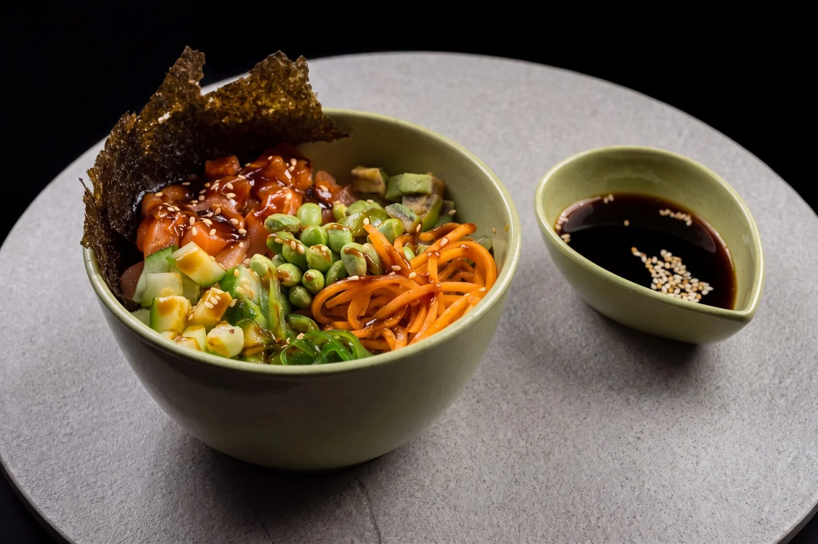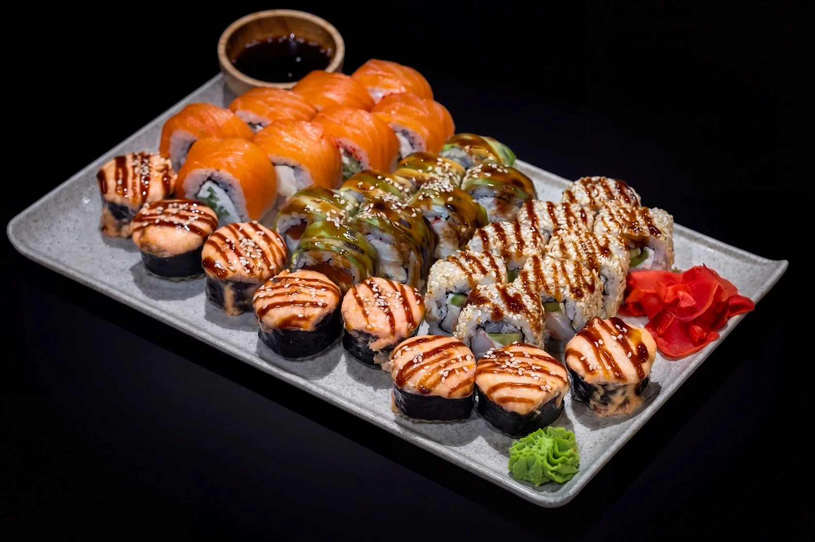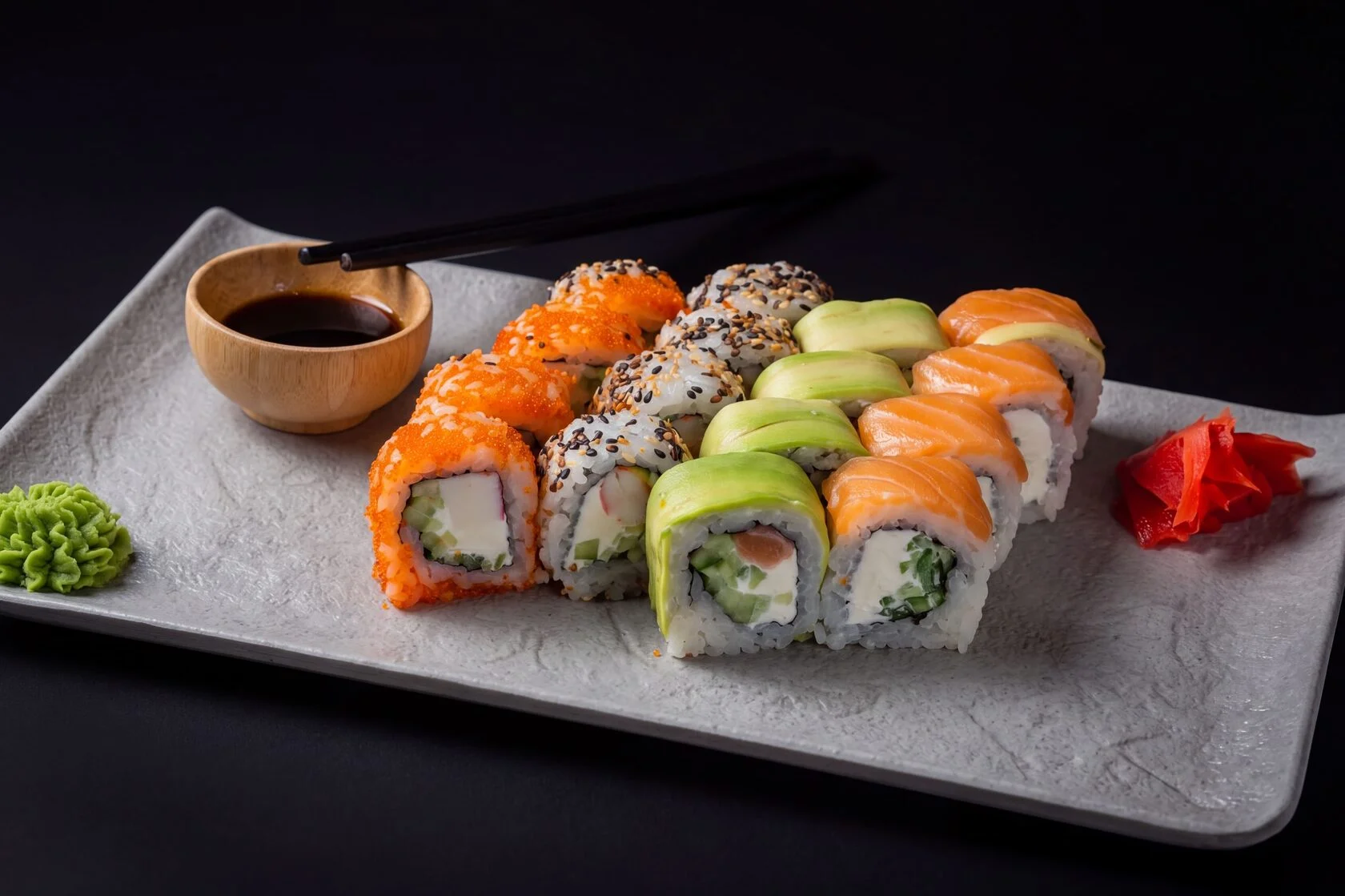 Delicate salmon and avocado covered in sesame.